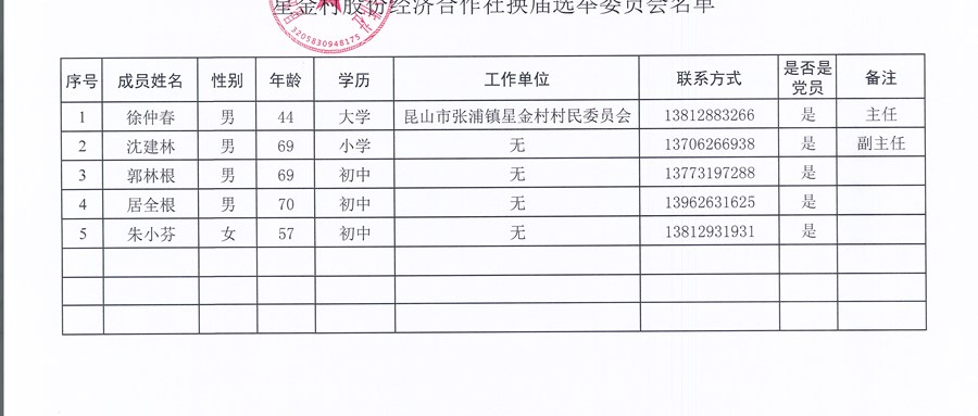 2026年星金村股份经济合作社选举委员会名单及选举工作方案