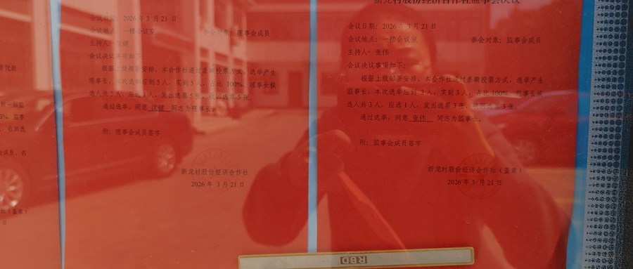 新龙村股份经济合作社 理事会、监事会成员候选人名单公告