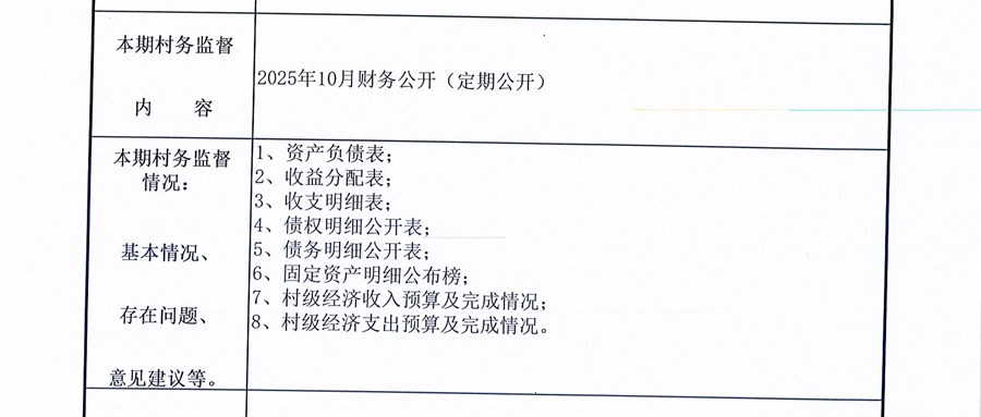 南港社区股份经济合作社2025年10月财务公开(定期公开)