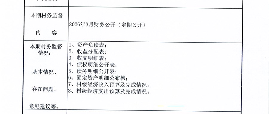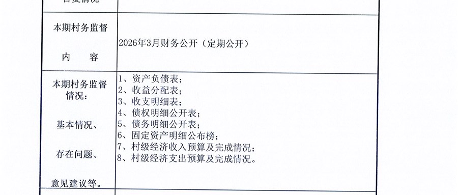 南港社区股份经济合作社2026年3月财务公开(定期公开)