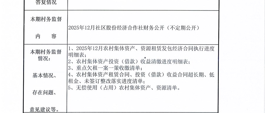 南港社区股份经济合作社2025年12月财务公开(定期公开)