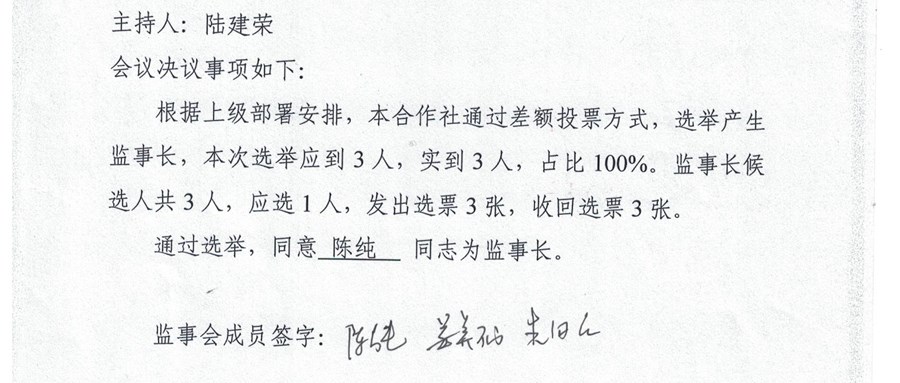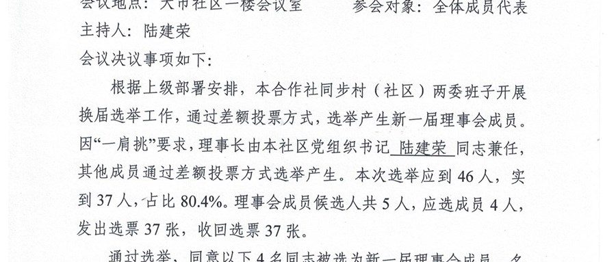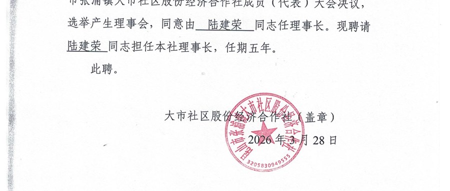 大市社区股份经济合作社换届选举任命书(外村书记)