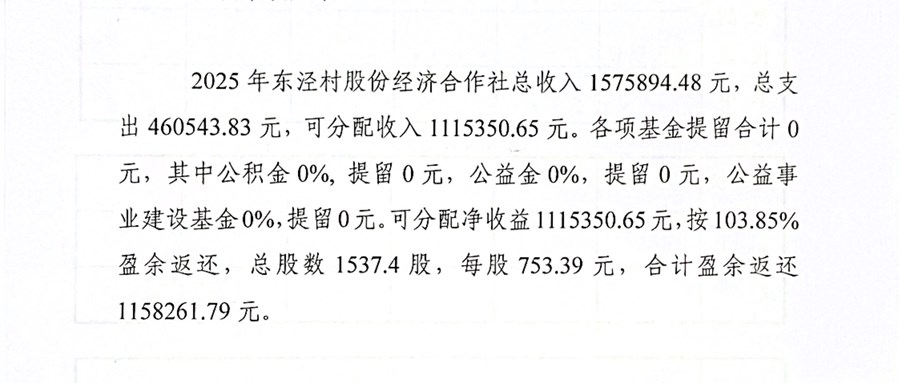 东泾村股份经济合作社2025年红利分配方案成员代表大会会议