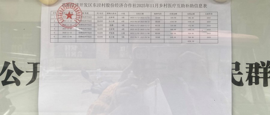 2025年11月东泾村股份经济合作社乡村医疗互助补助信息表公示