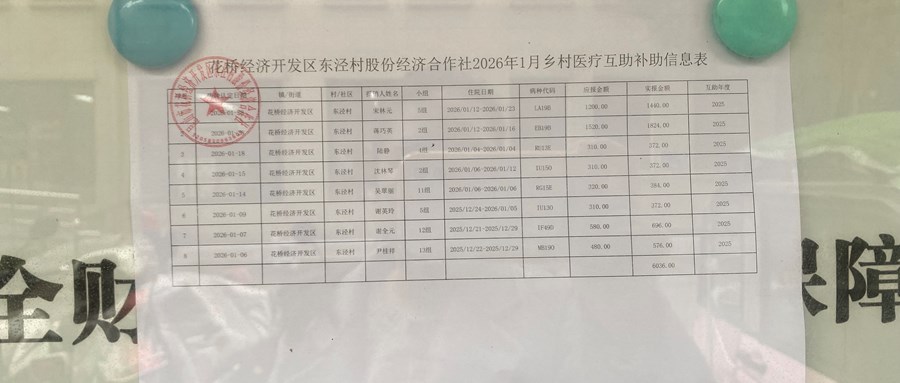 2026年1月东泾村股份经济合作社乡村医疗互助补助信息表公示