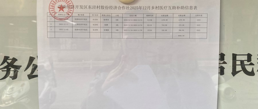 2025年12月东泾村股份经济合作社乡村医疗互助补助信息表公示