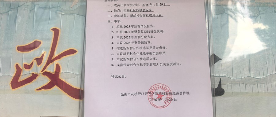 2025年新胡村股份经济合作社4季度清缴欠租公示