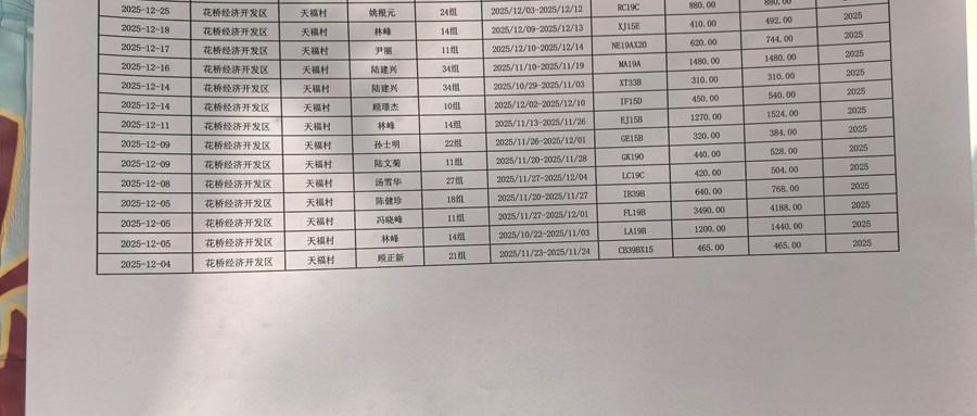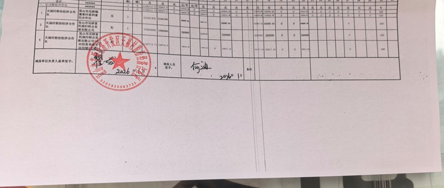 2025年天福村股份经济合作社第四季度清缴