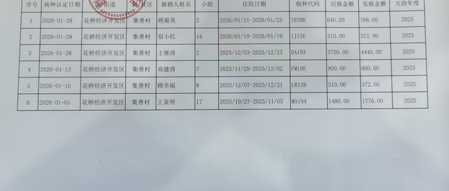 集善村股份经济合作社2026年1月乡村医疗互助补助信息公示
