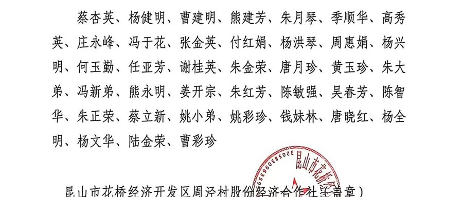 昆山市花桥经济开发区周泾村股份经济合作社成员代表名单公告