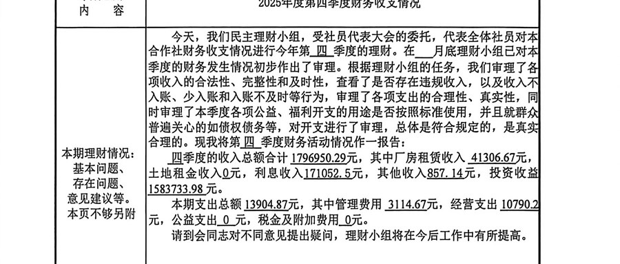 2026年3月25日周泾村股份经济合作社成员代表大会 会后结果公示
