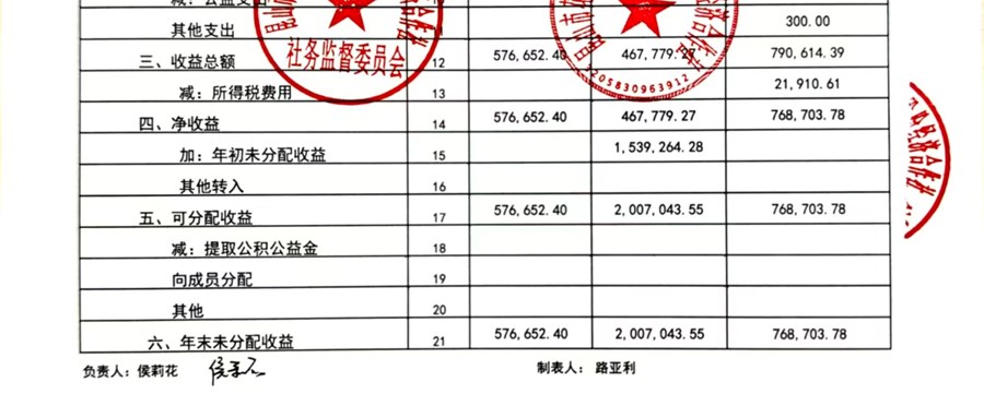 2025年蓬善村股份经济合作社10月份财务