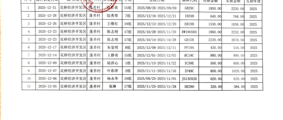 2025年蓬善村股份经济合作社11月份乡村医疗互助补助信息公示