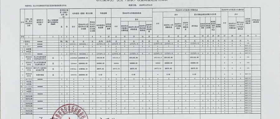 2025年星浜村股份经济合作社第4季度农村集体资产投资(借款)收益清缴进度明细表