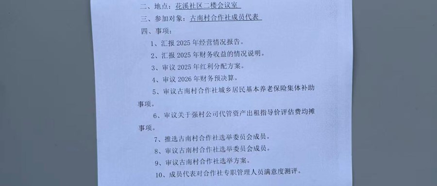 2025年古南村股金经济合作社分红大会和换届选举选委会成员名单以及选举方案的公示(2026.01.28)