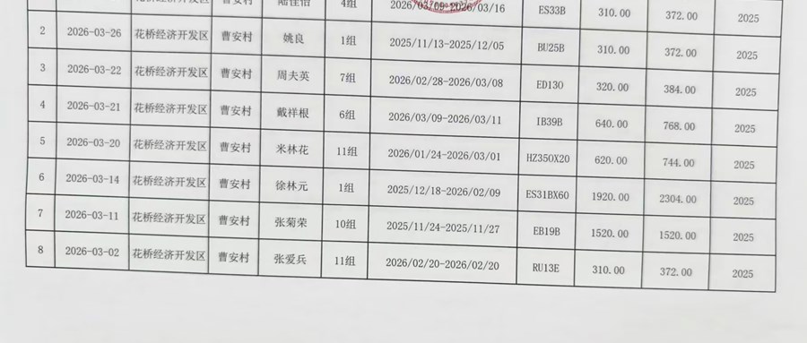 2026年曹安村股份经济合作社3月财务公开