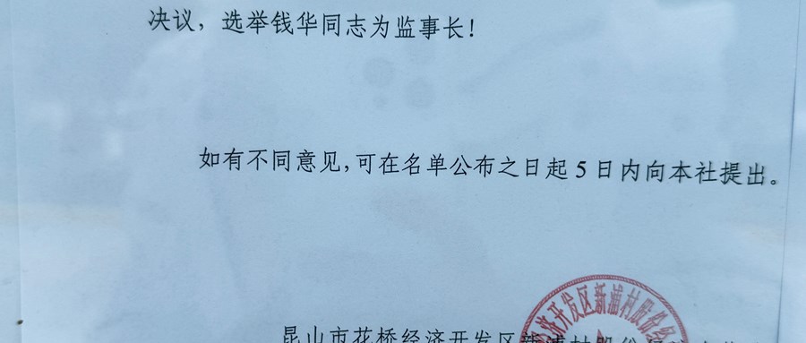 昆山市花桥经济开发区新浦村股份经济合作社关于监事长的公示