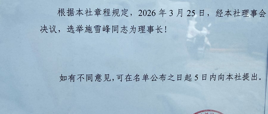 昆山市花桥经济开发区新浦村股份经济合作社关于理事长的公示