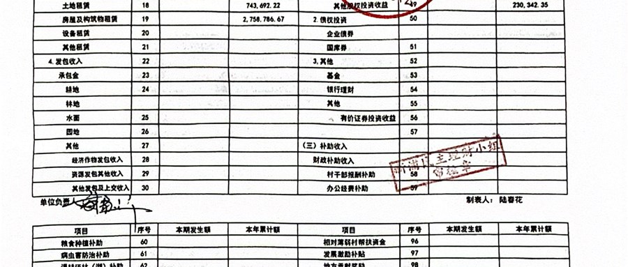 2025年新浦村股份经济合作社10月定期财务公示