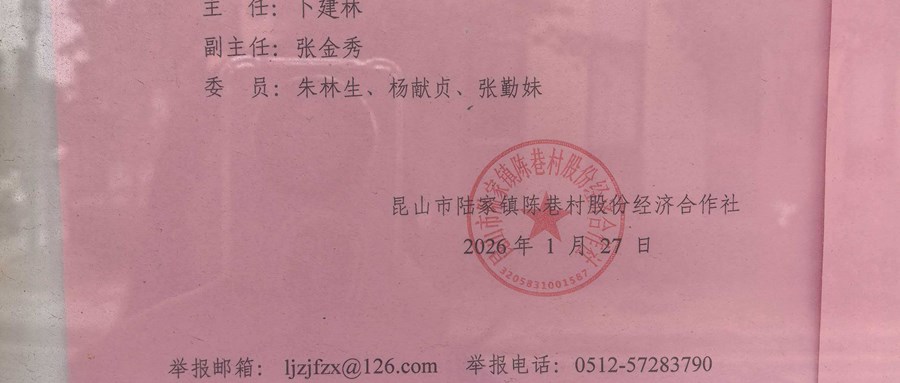 昆山市陆家镇陈巷村股份经济合作社换届选举委员会名单公告