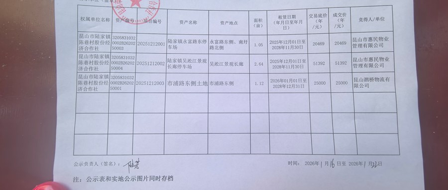 · 陈巷永富路东侧、吴淞江景观长廊停车场和市浦路东侧土地交易结果公示