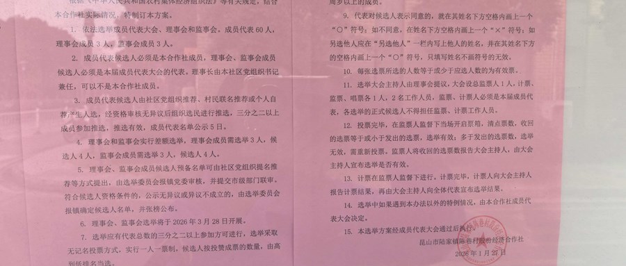 昆山市陆家镇陈巷村股份经济合作社选举方案公示