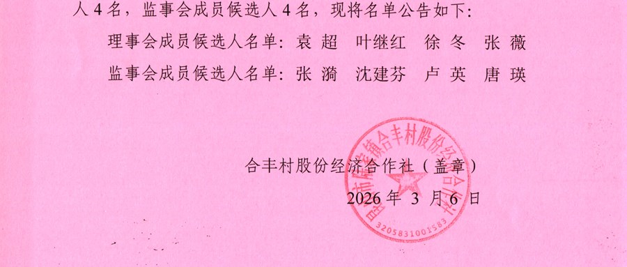 合丰村股份经济合作社理事会、监事会候选人名单公示