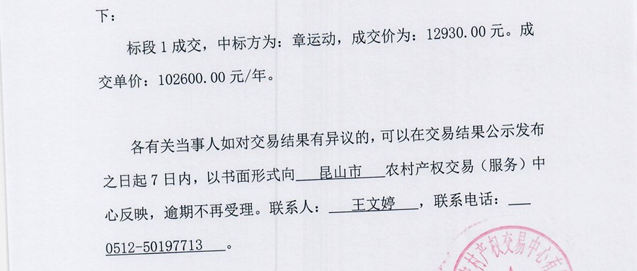 大农户产权交易结果公示