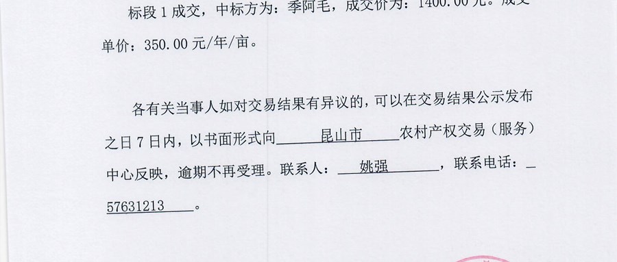 · 农村土地经营权流转交易结果公示表