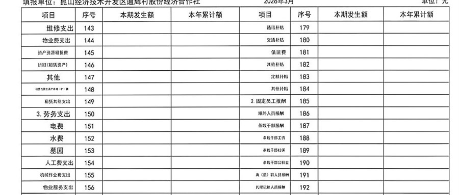 2026年3月通辉村股份经济合作社财务公开