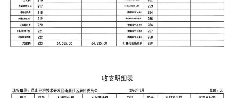 2026年3月蓬晨社区财务公开