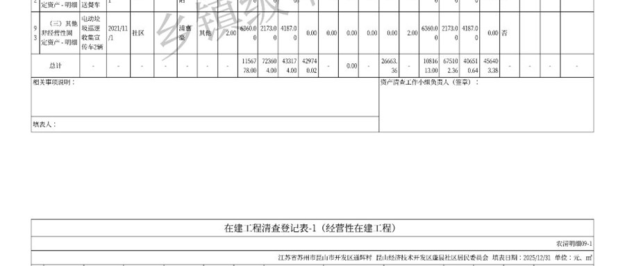 2025年蓬晨社区清产核资公示