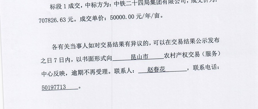 · 高标准农田交易结果公示