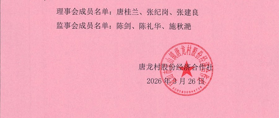 唐龙村股份经济合作社理事会、监事会成员候选人名单公告