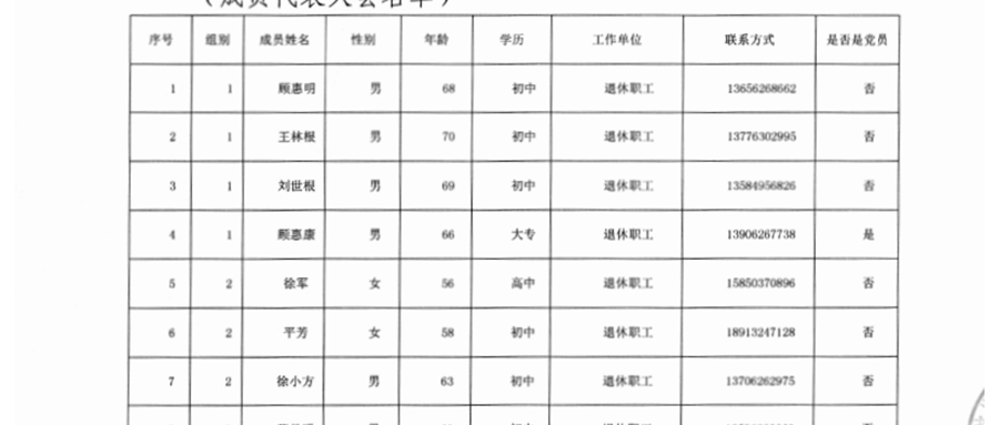 西河社区股份经济合作社 成员代表名单公告