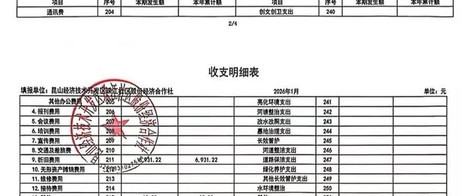 1月份经济合作社财务公开