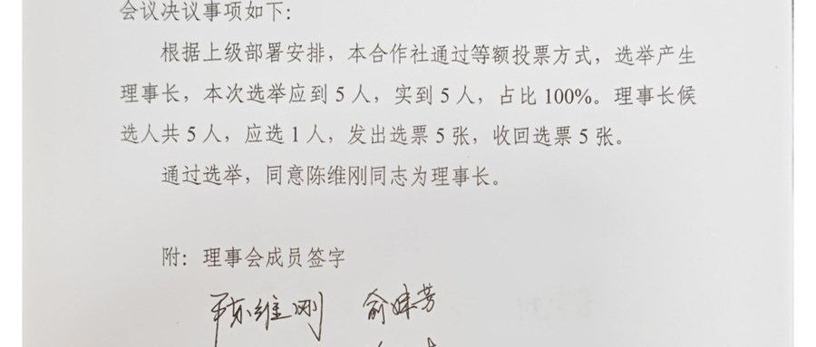 富华社区股份经济合作社理事会、监事会决议(理事长、监事长换届)