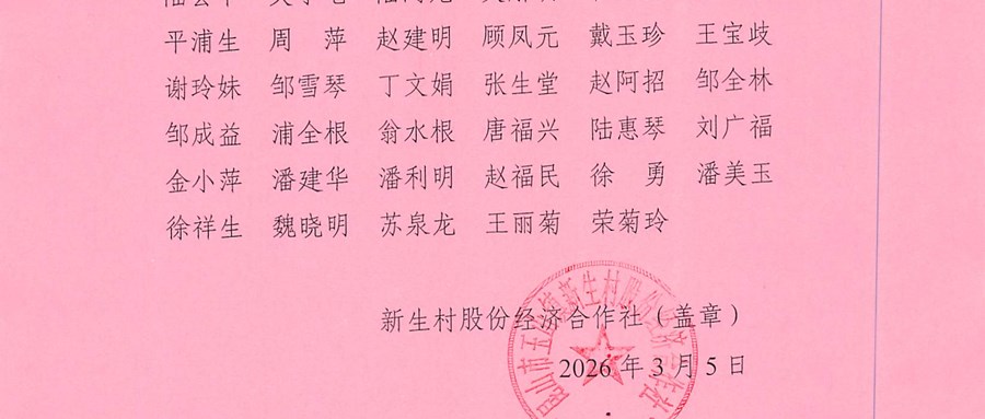 关于新生村股份经济合作社2025年收益分配事项社员代表大会结果的公示