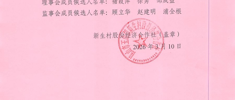 新生村股份经济合作社 理事会、监事会成员候选人名单公告