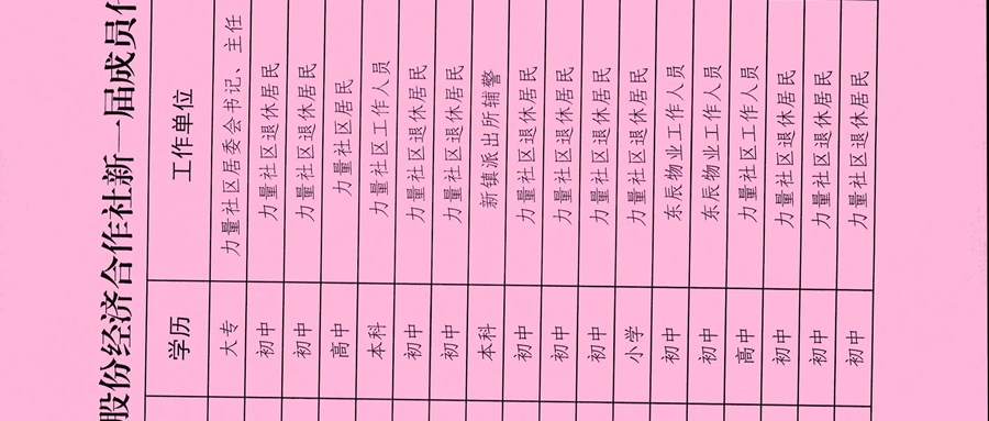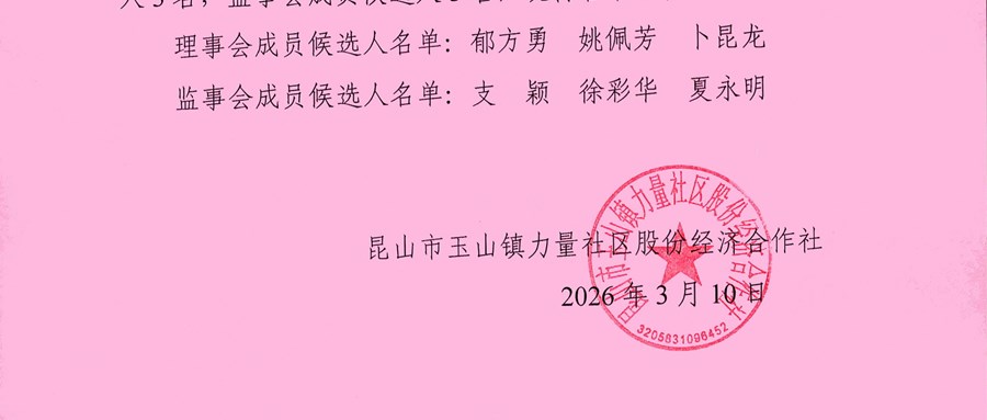 力量社区股份经济合作社理事会、监事会成员候选人名单公告