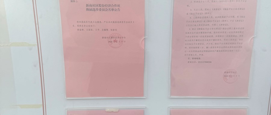 关于新南社区股份经济合作社收益分配等事项成员代表会议公示