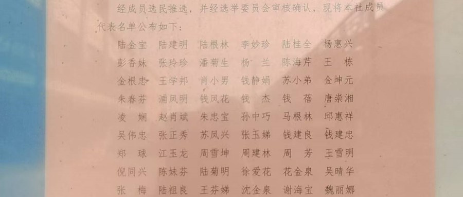 龙潭湖村股份经济合作社成员代表名单公告