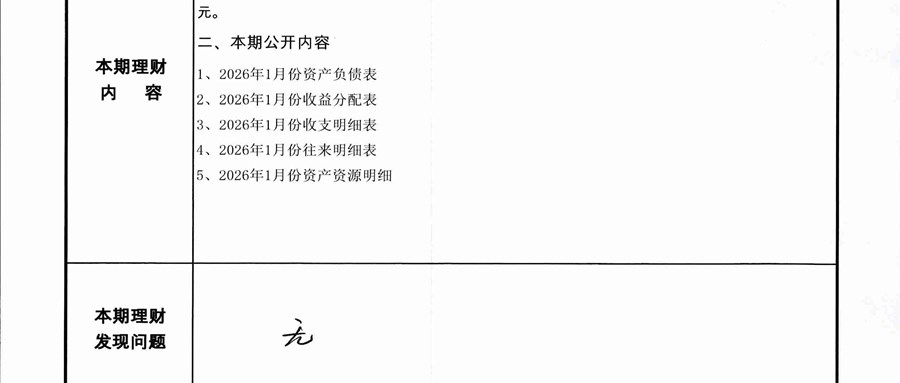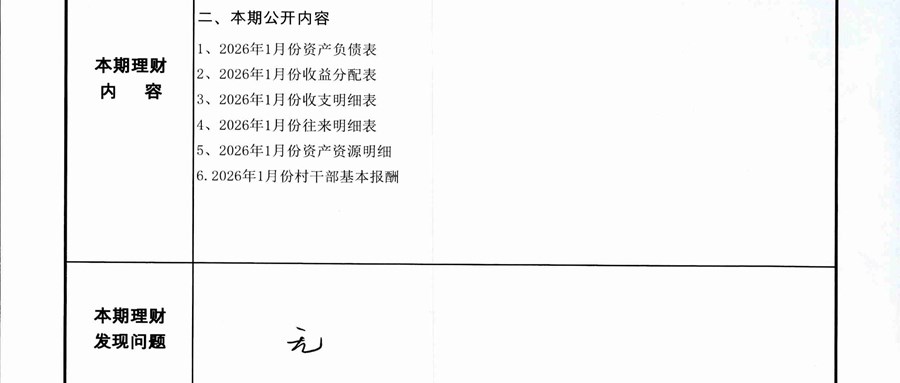 2026年1月份龙潭湖村财务公开