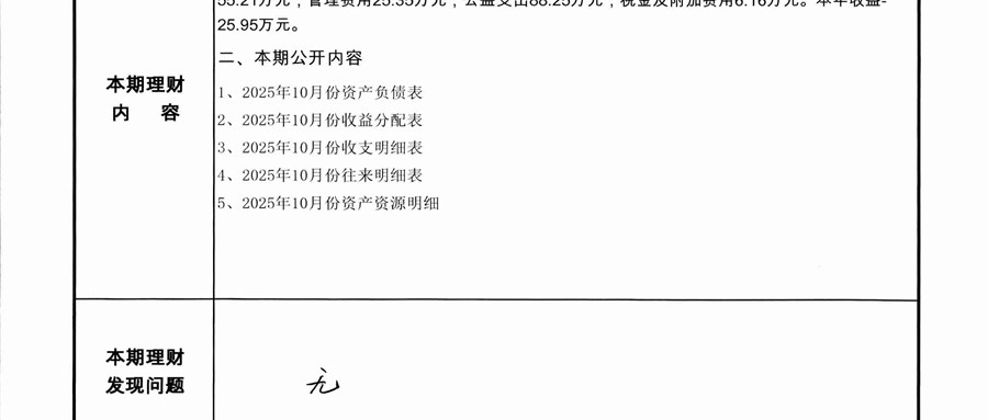 2025年10月份龙潭湖村财务公开