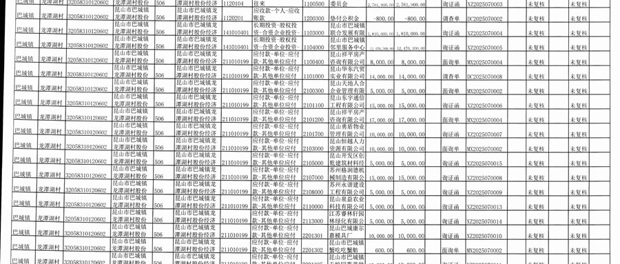 2025年11月份龙潭湖村股份经济合作社财务公开