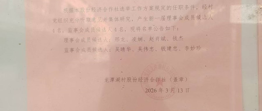 龙潭湖村股份经济合作社理事会、监事会成员候选人名单公告