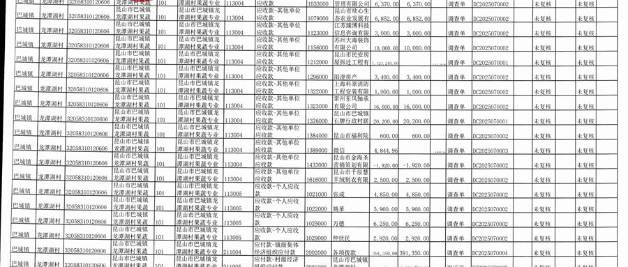 2025年11月份龙潭湖村财务公开