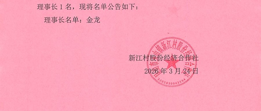 新江村股份经济合作社理事长、监事长名单公告