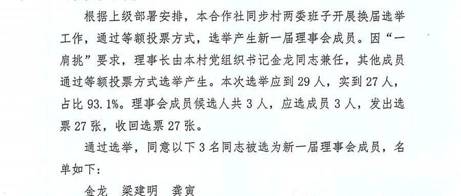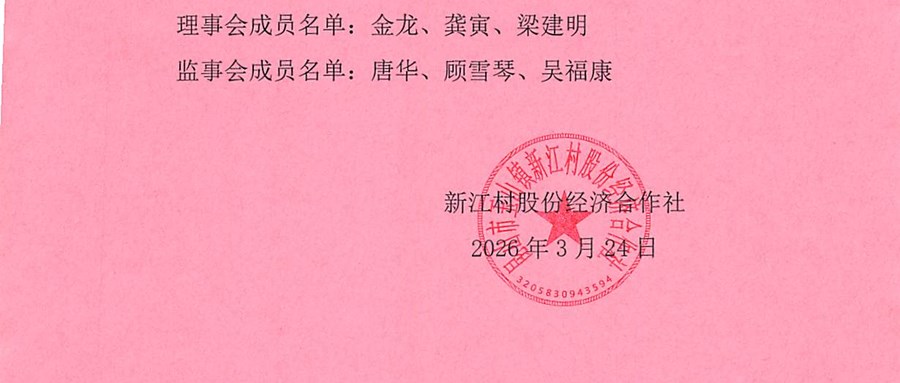 新江村股份经济合作社理事会、监事会名单公告