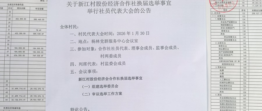关于新江村股份经济合作社换届选举事宜举行社员代表大会的公告